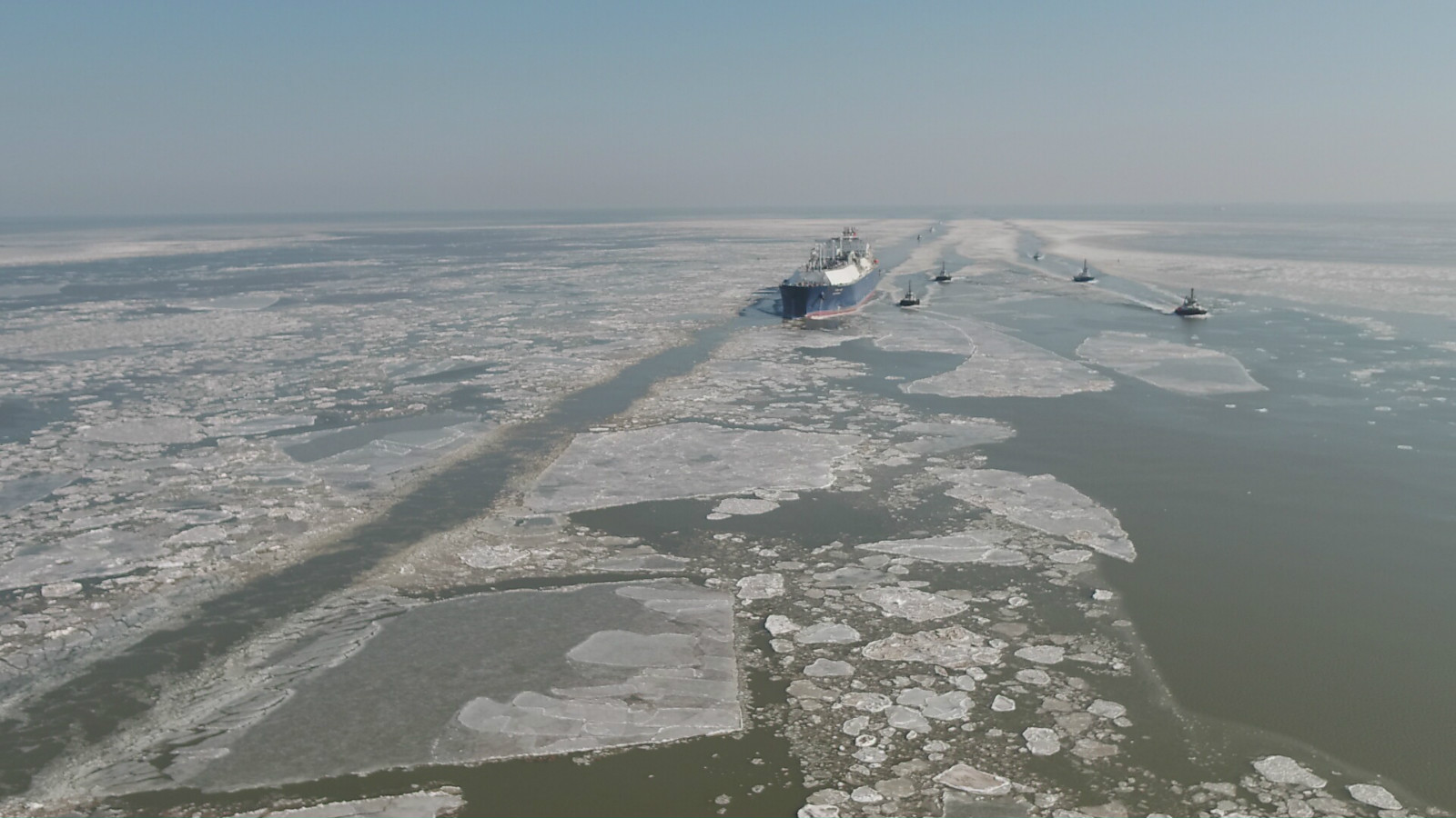央廣網天津2月6日消息(記者夏震宇 通訊員馬艷玲)在天津海事船艇的護送下,載運LNG(液化天然氣)的“中能北海”輪今天下午(2月6日)安全靠妥大港港區中石化天津LNG碼頭。這也是天津港大港港區通航后迎來的首艘LNG船舶。