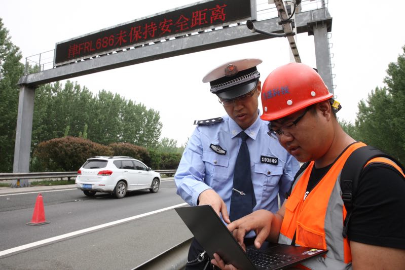 此外,天津交管部門還利用高速公路沿線的電子顯、高速交警巡查車后的顯示屏視頻滾動播放違法車輛號牌及違法行為,告知駕駛人在就近收費站駛離高速公路接受處理,起到了極大的震懾效果。對在高速公路上發生的未按規定保持安全車距交通違法行為,天津交管部門將依法對違法駕駛人處以200元的處罰(駕駛證不記分)。