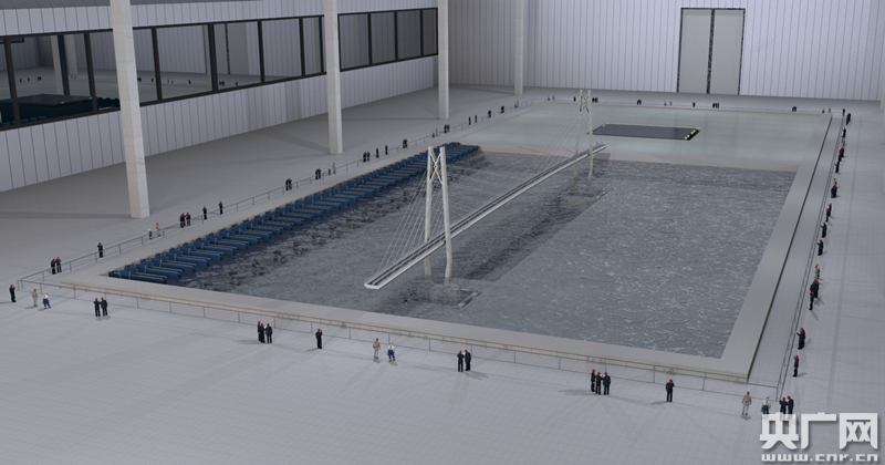 大跨橋梁水下振動(dòng)臺(tái)臺(tái)陣波流耦合試驗(yàn)現(xiàn)場(chǎng)效果圖