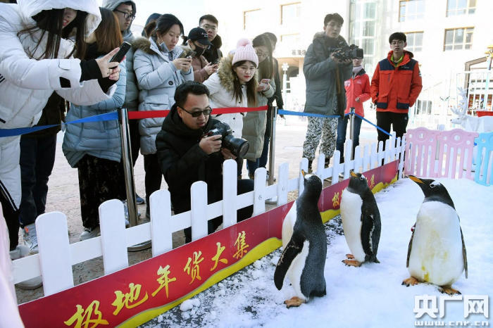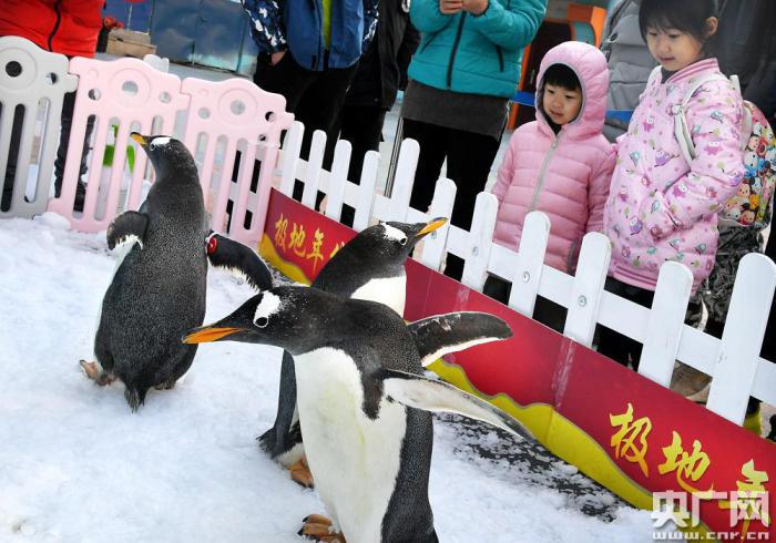 央廣網青島1月1日消息(記者王偉)元旦期間,青島海昌極地公園特意將企鵝請到園區室外,與市民游客零距離接觸,為市民、游客奉上一份特別的新年禮物。