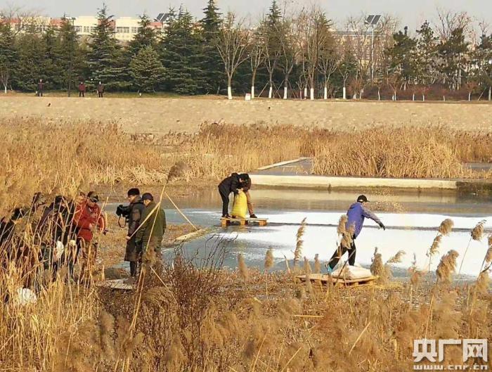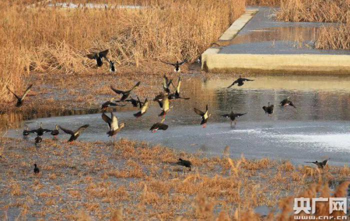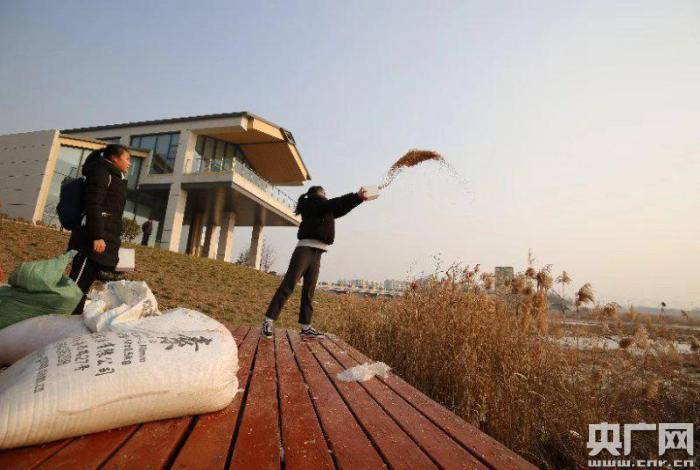 環保志愿者眾籌買糧為濕地候鳥投食越冬(央廣記者 王偉 攝)
