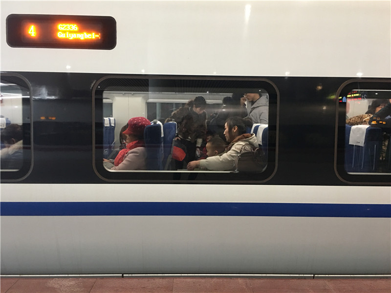 春運第一天貴陽北站高鐵動車組列車發車現場 (央廣記者 張兆福攝)