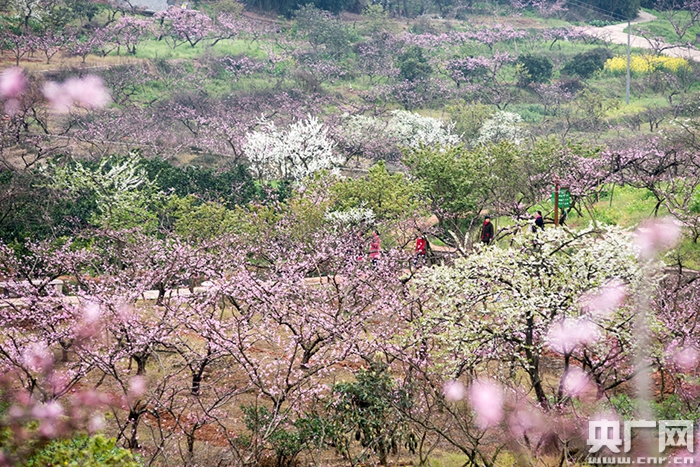 央廣網成都3月16日消息(記者劉濤)桃花春色暖先開,明媚誰人不看來。和煦春日,成都簡陽市數十萬畝桃花競相綻放,明艷花海吸引游客紛至沓來,賞桃花、對詩詞、游桃園、嘗美食、祈幸福……在當地催生出郊游踏青賞花熱潮。