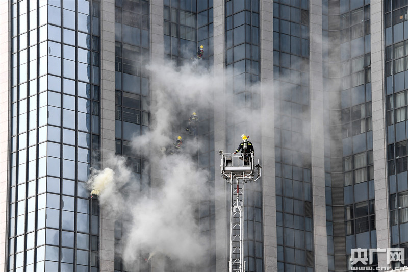 接警后,太原支隊調派駐守長風商務區的前置備勤力量和附近兩個微型消防站的救援人員趕赴現場。同時,按照重大安保期間調派力量上升一級的原則,啟動四級火警響應。支隊全勤指揮部遂行出動。啟動社會聯動應急響應預案,調集公安、供氣、醫療等相關聯動部門,隨后向消防救援總隊指揮中心報告。偵察組確定酒店三層仍有人員被困;警戒組進一步對現場實施警戒,組織觀眾疏散;滅火攻堅組分別利用沿樓梯蜿蜒鋪設水帶和垂直鋪設水帶等方法深入火場實施滅火,阻止火勢蔓延;搜救小組、舉高消防車占據有利位置,從頂部實施打擊,有效壓制火勢;救援組利用擔架和舉高消防車分別將行動不便人員和被困于3層的人員安全救援。待人員被全部救出,進攻陣地全部設置完畢,供水車輛全部到位后,指揮部下令對火勢發起總攻;16時40分,“大火”被成功撲滅,演練取得圓滿成功。