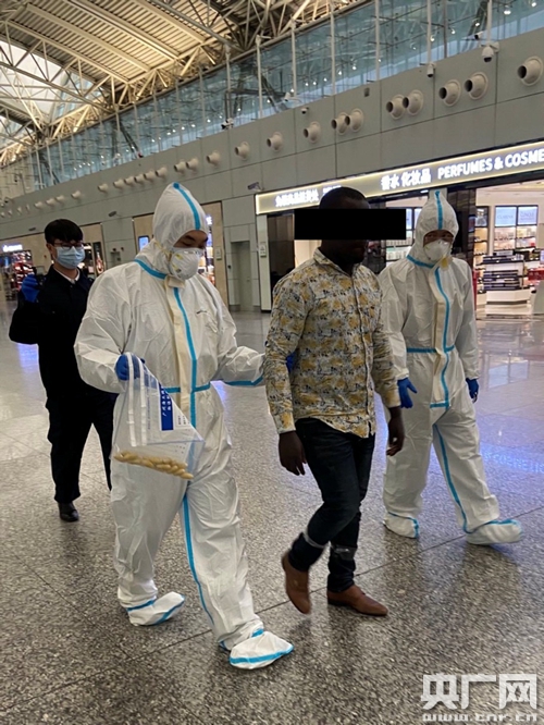 廣州白云機(jī)場海關(guān)將一名體內(nèi)藏毒犯罪嫌疑人移送海關(guān)緝私部門處置(央廣網(wǎng)發(fā) 海關(guān)供圖)