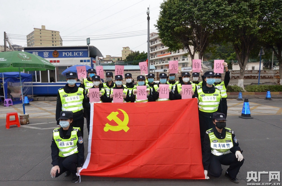 她們就是全國首批楓橋式公安派出所——佛山南海公安分局黃岐派出所成立的“女子黨員抗疫先鋒隊”。她們利用休班時間,深入一線開展防疫工作檢查與宣傳,將柔性服務延伸至抗擊疫情的末枝細節,扛起戰疫“半片天”。陳瑞貞是女子抗疫先鋒隊隊長、臨時黨支部書記、一名有著25年黨齡的老黨員。目前,女子抗疫先鋒隊共有22名隊員開展常態服務,其中包括黨員9名,她們在協助做好疫情防控的同時,開展轄區內企事業單位走訪巡查,積極助力復工復產。