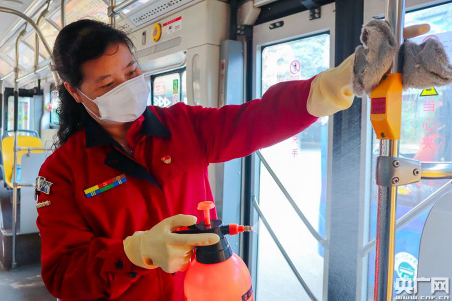 “乘客來坐我們的車,大可以放心!”讓市民放心的底氣從何而來?公交集團電車公司二分公司片區長溫漢雄告訴記者,自疫情發生以來,每位公交車長都進行嚴格的體溫檢測,上崗佩戴口罩是最基本的要求;每臺車輛每班次必消毒通風,特別對公交車輛車廂地板、扶手、座椅等乘客頻繁接觸部位會進行重點清潔,測溫儀也是每班次一消毒;同時車長們還會做好乘客體溫檢測工作,提醒乘客戴好口罩、不要相鄰而坐。