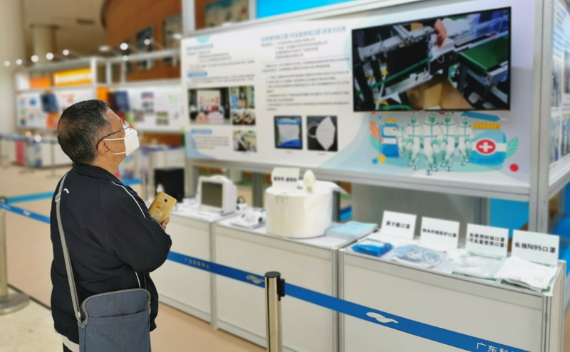 為更好地科普廣東省科技在防疫抗疫方面的創新成果和科學知識,廣東科學中心推出“廣東科技支撐打贏疫情防控阻擊戰”主題展。展覽現場,大家可看到“肺炎1號”、腺病毒載體疫苗、 AI影像輔助診斷系統、隔離病床、無接觸式遠距體溫監測儀、可重復使用的N95口罩等防控科技成果展示。