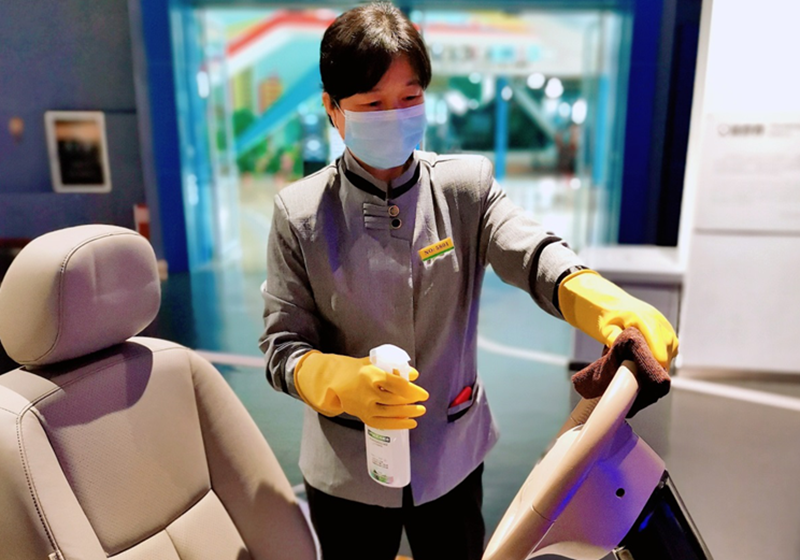 工作人員定時對展項設施消毒殺菌(央廣網發 廣東科學中心供圖)