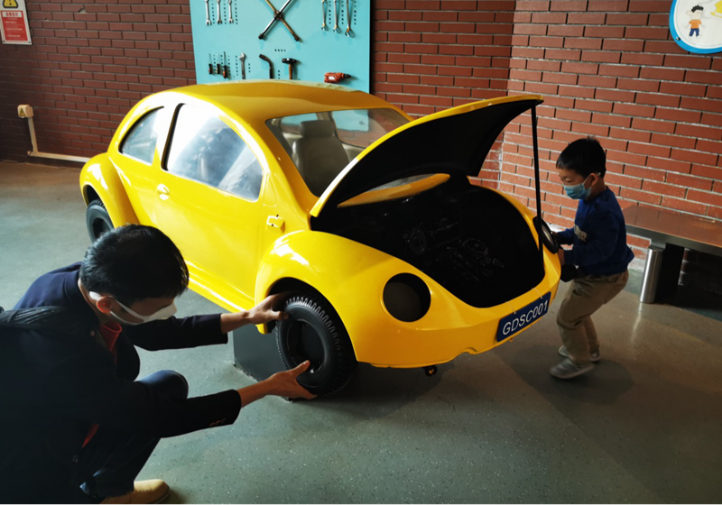 一對父子在館內體驗參觀(央廣網發 廣東科學中心供圖)