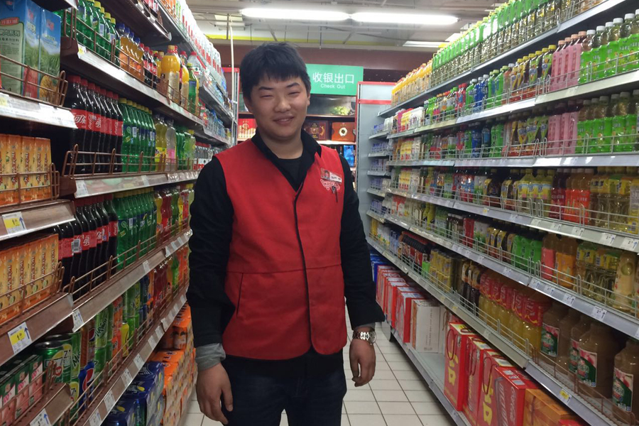陳晨,男,27歲,河南省安陽市麥多超市飲酒科科長,負責超市酒水的調度、補貨、上貨等工作。在他工作的5年時間里,雖然已經從該超市的一名普通的搬運工一步步晉升為飲酒科科長,但每天依然要幫其他員工一起搬貨上貨。春節期間,超市的工作量暴增,已經是遍布老繭的雙手還是有多處被磨破,但對他而言年年都是如此,一個繭印猶如一個年輪,是歲月的痕跡,也是責任的印記。