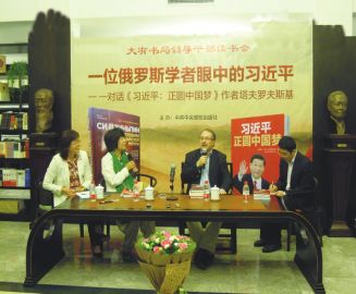 本報訊(記者 石偉 閆書華)4月12日晚,中央黨校舉辦了大有書局領導干部讀書會。本次讀書會的主題是《一位俄羅斯學者眼中的習近平——對話〈習近平:正圓中國夢〉作者塔夫羅夫斯基》。俄羅斯人民友誼大學教授、知名漢學家、政論家塔夫羅夫斯基應邀參加,中央黨校常務副校長何毅亭,副校長趙長茂,校委委員、培訓部主任羅宗毅和中央黨校學員近兩百人參加了本次讀書會。《習近平:正圓中國夢》是俄羅斯埃克斯莫出版社2015年5月初隆重出版、作為歡迎習近平總書記出席俄羅斯舉行的世界反法西斯戰爭勝利70周年紀念活動的友好象征。該書圍繞實現“中華民族偉大復興中國夢”這條主線,介紹了習近平總書記的成長經歷和家庭環境、中國夢提出的時代背景和過程,高度評價了習近平總書記為實現中國夢提出的一系列新思想新理念新舉措。該書出版后,在俄羅斯國內受到廣大讀者和出版界的廣泛關注。根據簽約,該書中文版將由中央黨校出版社出版。