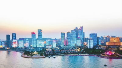 無(wú)人機(jī)拍攝的青島浮山灣夜色。新華社發(fā)