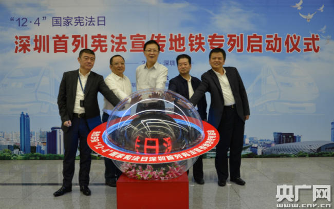 央廣網(wǎng)深圳12月4日消息(記者黃倩 通訊員司新宣)昨天(3日)下午,在第五個“12·4”國家憲法日來臨之際,深圳市普法辦、深圳市司法局、深圳市國資委和深圳市地鐵集團有限公司在深圳地鐵二號線開啟了深圳首列憲法宣傳專列,同時還在地鐵九號線開啟了“掃黑除惡”普法宣傳專列。