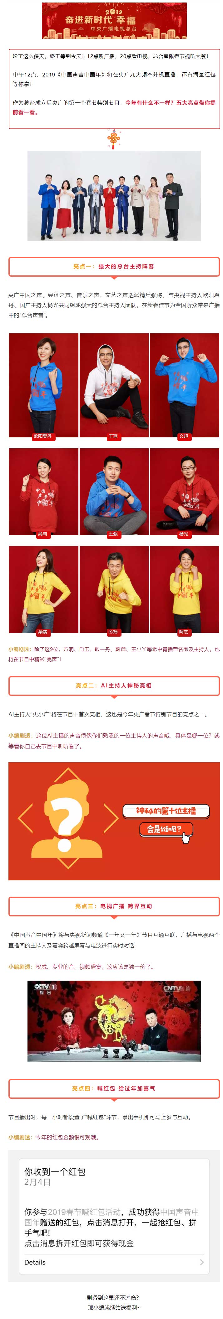 中午12點,2019《中國聲音中國年》將在央廣九大頻率并機直播,還有海量紅包等你拿!
