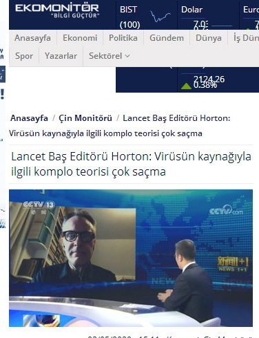 土耳其經濟觀察網:《柳葉刀》總編霍頓稱與病毒來源相關的陰謀論很可笑
