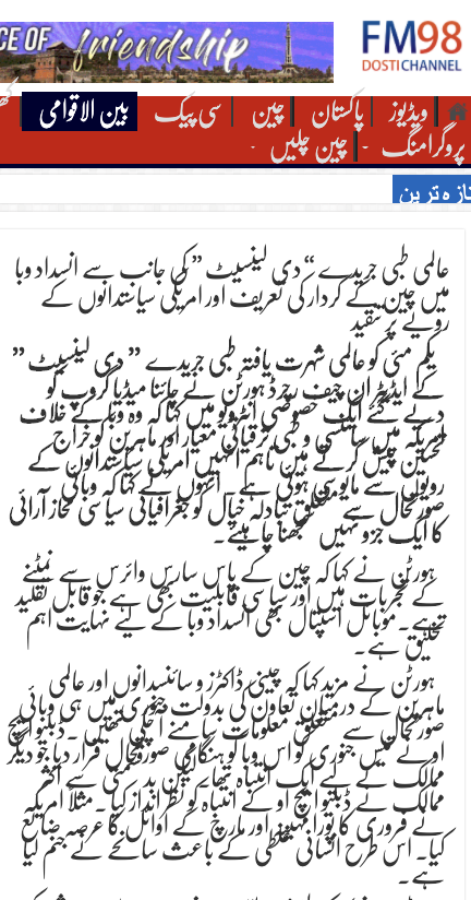 巴基斯坦FM98中巴友誼網報道↓