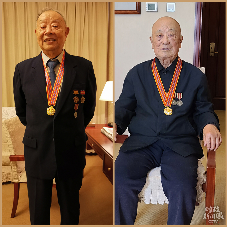 △今年86歲的張元杰(左)參加過上甘嶺戰役,榮獲三等功2次,90歲的王德啟(右)在抗美援朝期間榮立三等功4次。他們都出席了當天的紀念大會。(總臺央視記者王曉東、趙化拍攝)