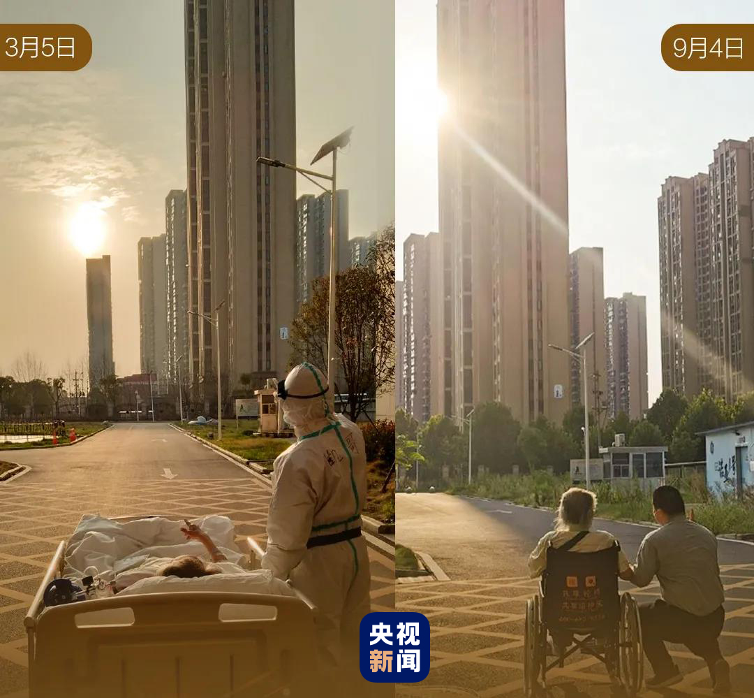 9月4日,兩人在武漢大學(xué)人民醫(yī)院東院重逢,再次來到半年前拍落日的位置,重現(xiàn)醫(yī)患攜手看夕陽的溫馨一幕。