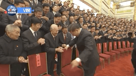 看到91歲高齡的“中國核潛艇之父”黃旭華,習(xí)近平深情地握著老人的手,攙扶著有些佝僂的黃旭華,請他坐到身邊合影——