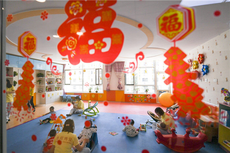 在內蒙古呼和浩特市兒童福利院,教職工在陪伴兒童們玩耍(2019年5月28日攝)。新華社記者 王靖 攝