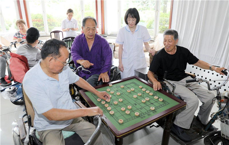 河北省唐山市截癱療養院的住院者在下棋(2019年7月25日攝)。新華社記者 趙鴻宇 攝