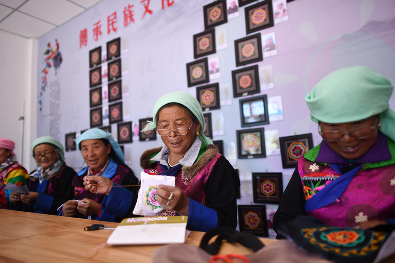 村里還用國家精準(zhǔn)扶貧專項資金修建了一座盤繡園。“村里的婦女在這里平均每人每年能有6000元的收入,最多的一年能掙1.7萬元。”現(xiàn)任駐村第一書記袁光平說。