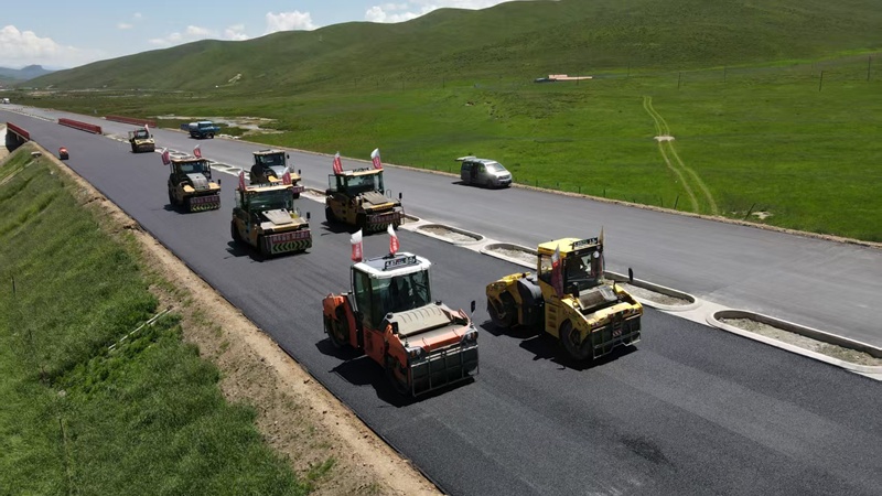 同賽項(xiàng)目同仁至西卜沙、麥秀至賽爾龍段年度通車(chē)段路面工程實(shí)現(xiàn)貫通