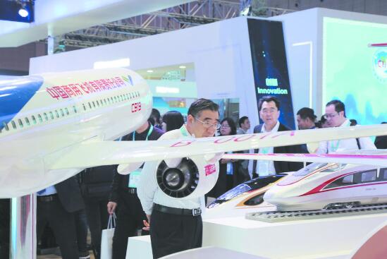 在中國館,一進門便是一個復興號高鐵和C919國產大飛機的縮模,這代表著創新,也是被稱為“中國制造”新名片的產品都有著“成都造”元素。C919的“機頭”生產線都來自中航成飛民用飛機有限責任公司。C919機頭是飛機安裝“大腦”的關鍵部位,不僅是整架飛機的“顏值擔當”,還承擔著安全引航的重責。據了解,從設計開始,C919機頭就沒有二維圖紙,直接在電腦上以三維模型進行設計,更加直觀,也更為準確。