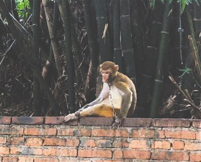 7月25日,網友通過新浪微博報料稱,周末他跟朋友去峨眉山避暑,在報國寺附近閑逛,想在周邊農家樂買土雞。走進其中一家農家樂的院子,看到一只猴子被鐵鏈拴住脖子,鎖在一個手推車上,“看起來非常可憐,誰來解救大師兄?”有網友表示,猴子是峨眉山上的“山大王”,這些頑皮又霸道的猴子,讓廣大游客又愛又怕,不曾想到,還有一只猴子落魄如斯。“猴子是野生動物,應該加以保護,不能隨意飼養。”有網友呼吁景區相關部門盡快解救猴子。