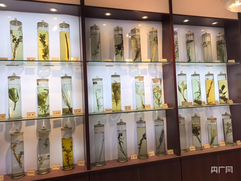 中醫(yī)藥特色鮮明的浸制標本墻(央廣網(wǎng)記者 劉佳音 攝)