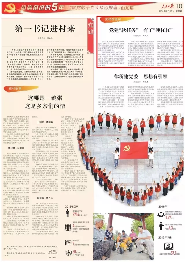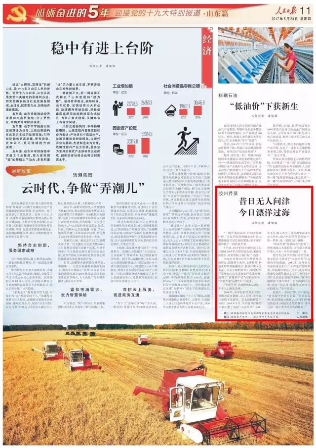 8月24日,《人民日報》以8個版的篇幅,推出“砥礪奮進的5年·迎接黨的十九大特別報道·山東篇”,刊發山東十八大以來取得的成就。