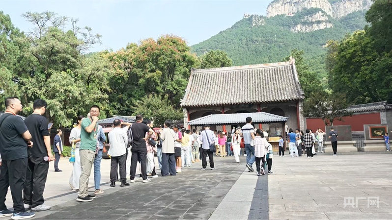 濟南靈巖寺景區的文藝活動吸引了眾多游客(央廣網發 查天奇攝)