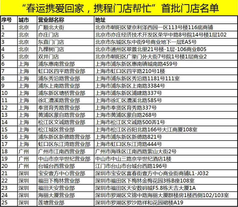 2018年春運之際,為解決外出務工人員買票難、回家難的問題,攜程、去哪兒、百事通在在北京、上海、廣州、深圳等重點城市的門店也將啟動“幫忙活動”,利用線下門店接近商圈社區、有專門人員線下一對一服務的優勢,協助務工人員、建設者等群體“返鄉”。