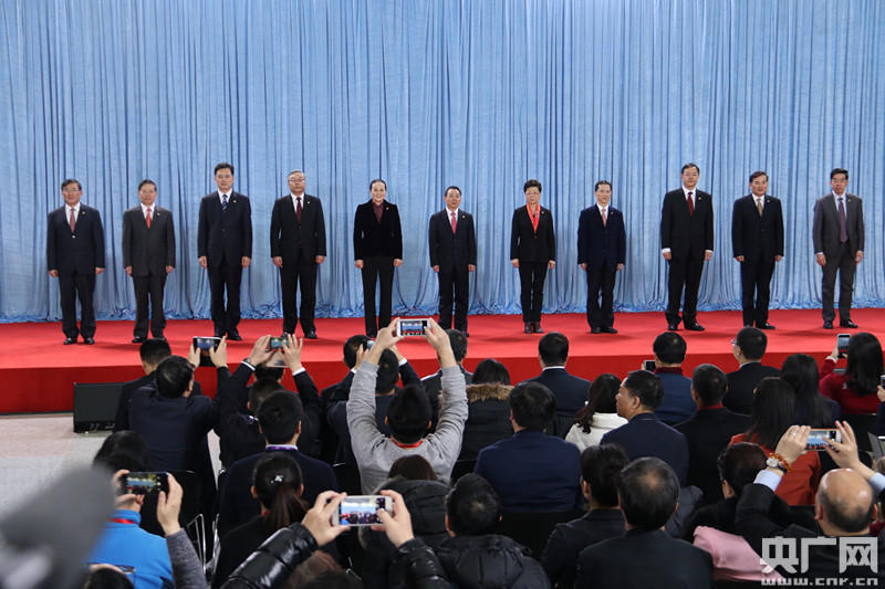 央廣網上海1月27日消息(記者王渝新 吳善陽 林馥榆 韓曉余)今天中午,上海市政協十三屆一次會議閉幕會議剛剛結束,新當選的市政協主席董云虎帶領新一屆市政協主席會議11名成員集體亮相,與數十家采訪市政協全會的媒體記者見面。