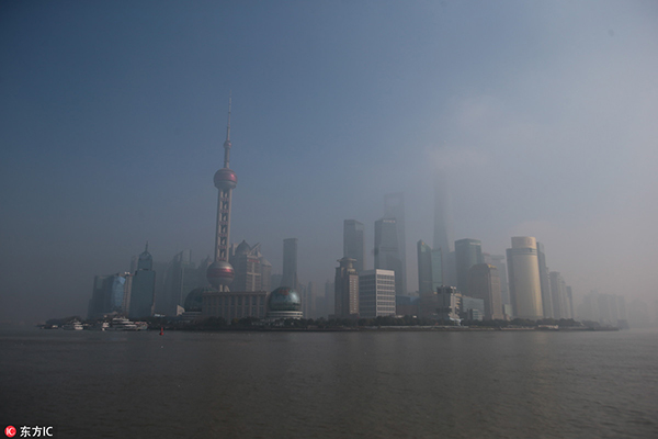 圖說:上海外灘對面的陸家嘴淹沒在霧霾之中。來源:東方IC