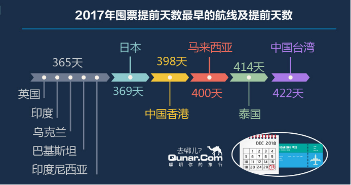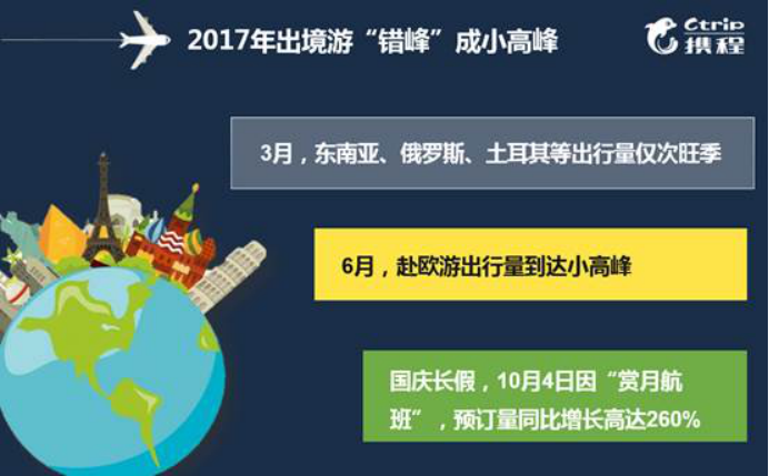 據最新出爐的《2017年去哪兒出境游報告》顯示,從去哪兒綜合平臺搜索覆蓋的近62萬條航線、超610家航空公司的數據來看,2017年出境游關鍵詞:錯峰、年輕、愛囤票。