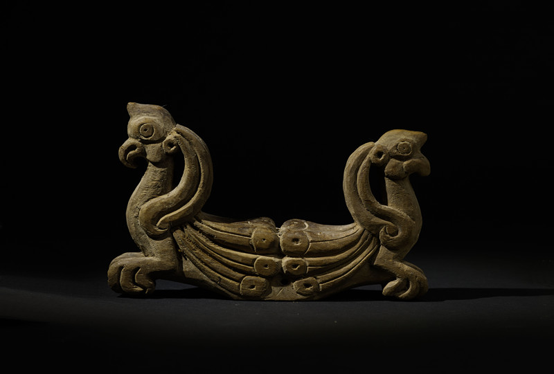 憑借強大的國力,貴霜王朝不僅對周邊地區產生一定的文化影響,而且在經濟上產生了更為深入的影響。中亞地區最具特色的本土藝術就是建筑裝飾。當貴霜人成為這一地域的統治者之后,他們融合其它藝術形式并盡情發揮,將建筑裝飾藝術也推向了一個新的階段。在展品“木雕人獸飾板”中刻畫的有翼神獸是虛構的神話動物,大象也不可能出現于古代和田地區,這兩種動物形象的同時出現說明了古代和田人與外部世界的溝通交流。