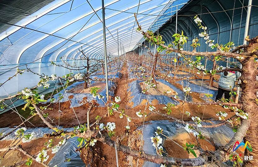 走進(jìn)大棚,陣陣暖意撲面而來,滿枝的櫻桃花次第盛開,村民們穿梭在果樹間,忙著修剪、管護(hù),臉上滿是對(duì)豐收的憧憬。“這段時(shí)間櫻桃花陸續(xù)綻放,再過一周就進(jìn)入盛花期,花期能持續(xù)半個(gè)多月。”技術(shù)員姜政宏介紹,眼下管護(hù)的關(guān)鍵是把控好棚內(nèi)溫濕度穩(wěn)定保持在24℃左右,等盛花期一到,就會(huì)開展點(diǎn)花、人工授粉等工作,為后續(xù)櫻桃坐果筑牢基礎(chǔ)。