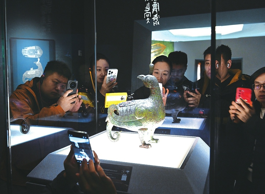 1月2日,山西博物院內,游客在聚精會神賞文物、聽講解,了解歷史知識,感受三晉文明魅力。(王若淵)