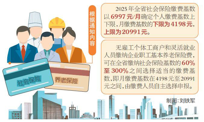 近日,山西省人社廳、省財政廳、國家稅務總局山西省稅務局、省醫療保障局聯合下發通知,公布我省2025年繳納社會保險費基數,自2025年1月1日起執行。(記者 韓林芳)