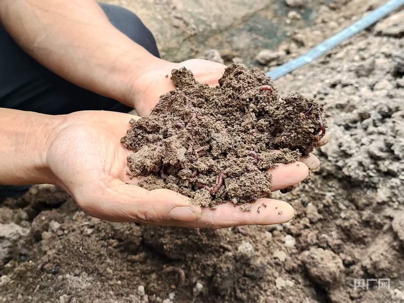 種植戶劉浪浪展示蚯蚓肥(央廣網(wǎng)發(fā) 實習(xí)記者 高悅 攝)