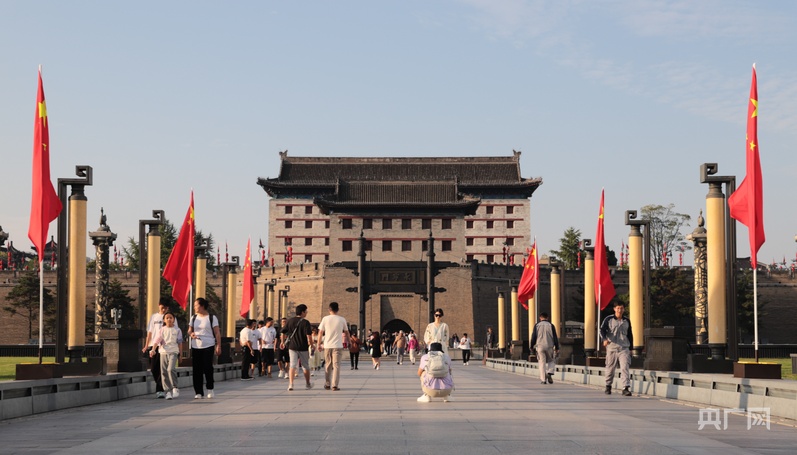 西安永寧門廣場在五星紅旗裝扮下節日氛圍格外濃厚(央廣網發 陸顯翊 攝)