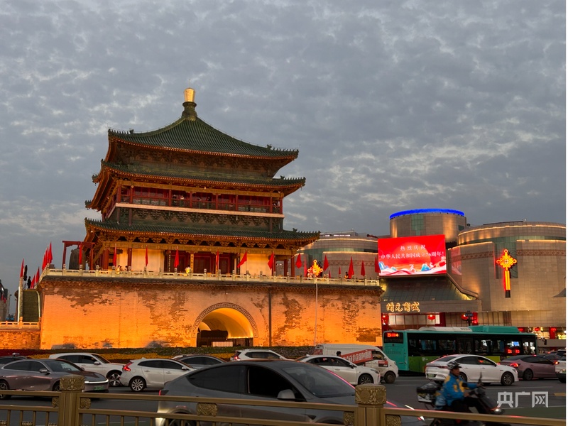 暮色下的西安鐘樓燈火璀璨(央廣網發 陸顯翊 攝)