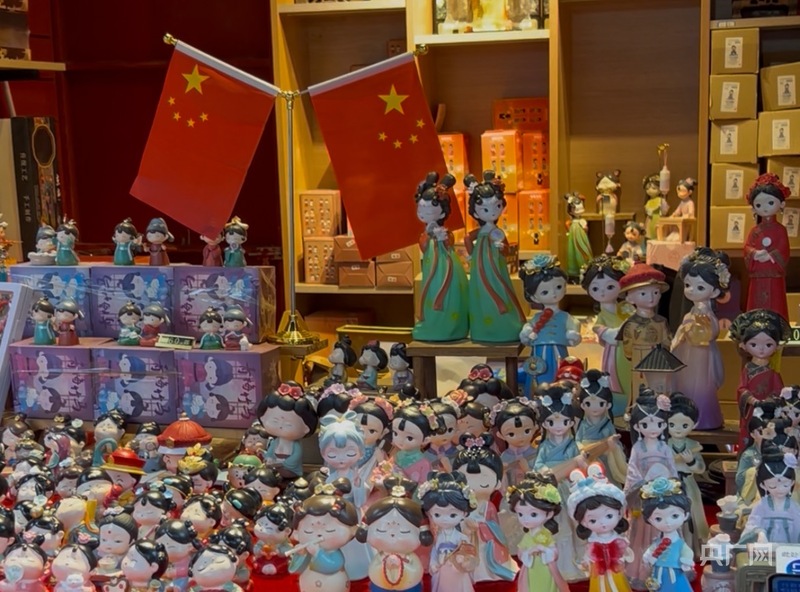 小攤里國旗與文創產品帶來濃濃的節日氛圍(央廣網發 陸顯翊 攝 )