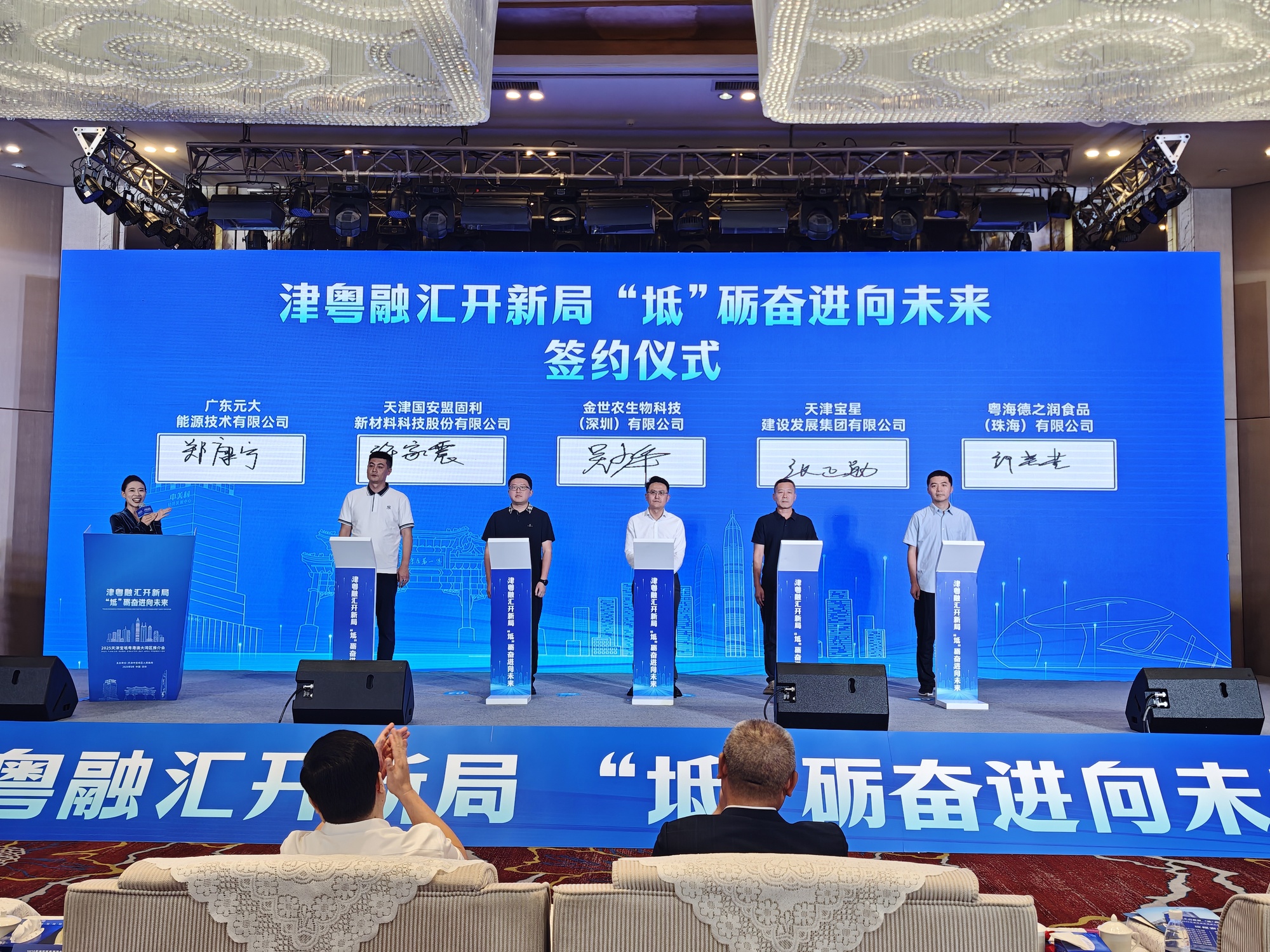 本次活動設置主題分享、宣傳推介、項目簽約、揭牌儀式、顧問致聘等環節。活動現場,已落戶寶坻的大灣區企業家代表中冶邁克董事長朱躍龍,深圳無人機協會副會長、總工程師楊漾,華為公司政務一網通軍團副總裁傅海波分別圍繞寶坻區產業優勢、營商環境、無人機、AI智算、大數據、智能體等主題進行分享;京津中關村科技城管委會副主任韓帥圍繞京津中關村科技城智能網聯車、低空經濟領域進行現場推介,發布了一批產業園區和重要項目招商信息,釋放了京津冀與粵港澳大灣區協同聯動發展、共同培育發展新質生產力的強烈信號。