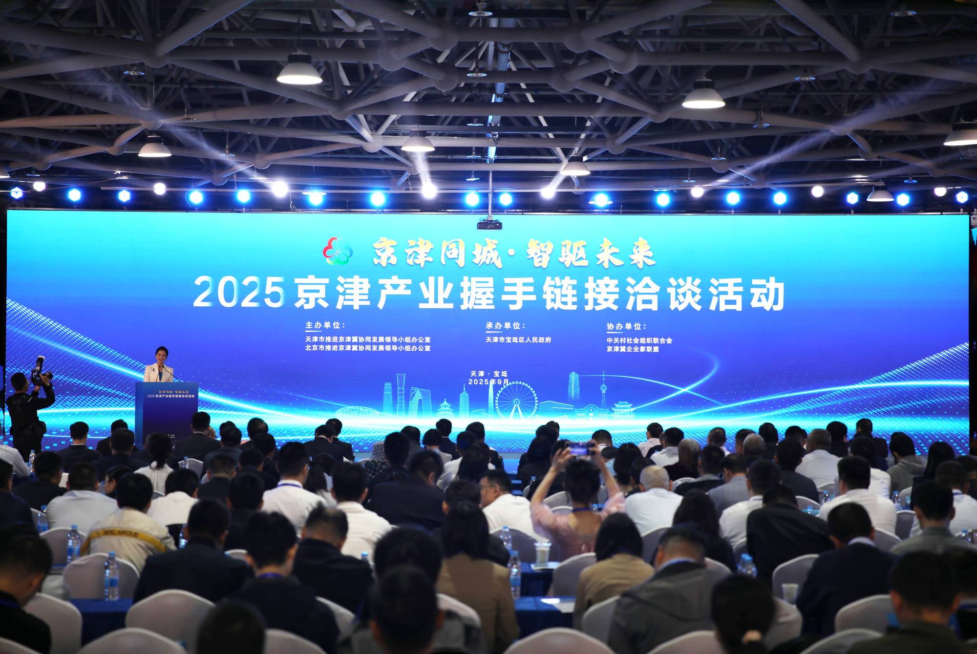 本次活動以“京津同城·智驅未來”為主題,由京津兩市推進京津冀協同發展領導小組辦公室主辦,天津市寶坻區人民政府承辦,圍繞同城化推動城市發展、數智化驅動未來產業,設置了企業分享、成果發布、園區推介、機構揭牌、項目簽約等環節。京津兩市領導作開幕致辭,并為“天開高教科創園寶坻園”開園揭牌。