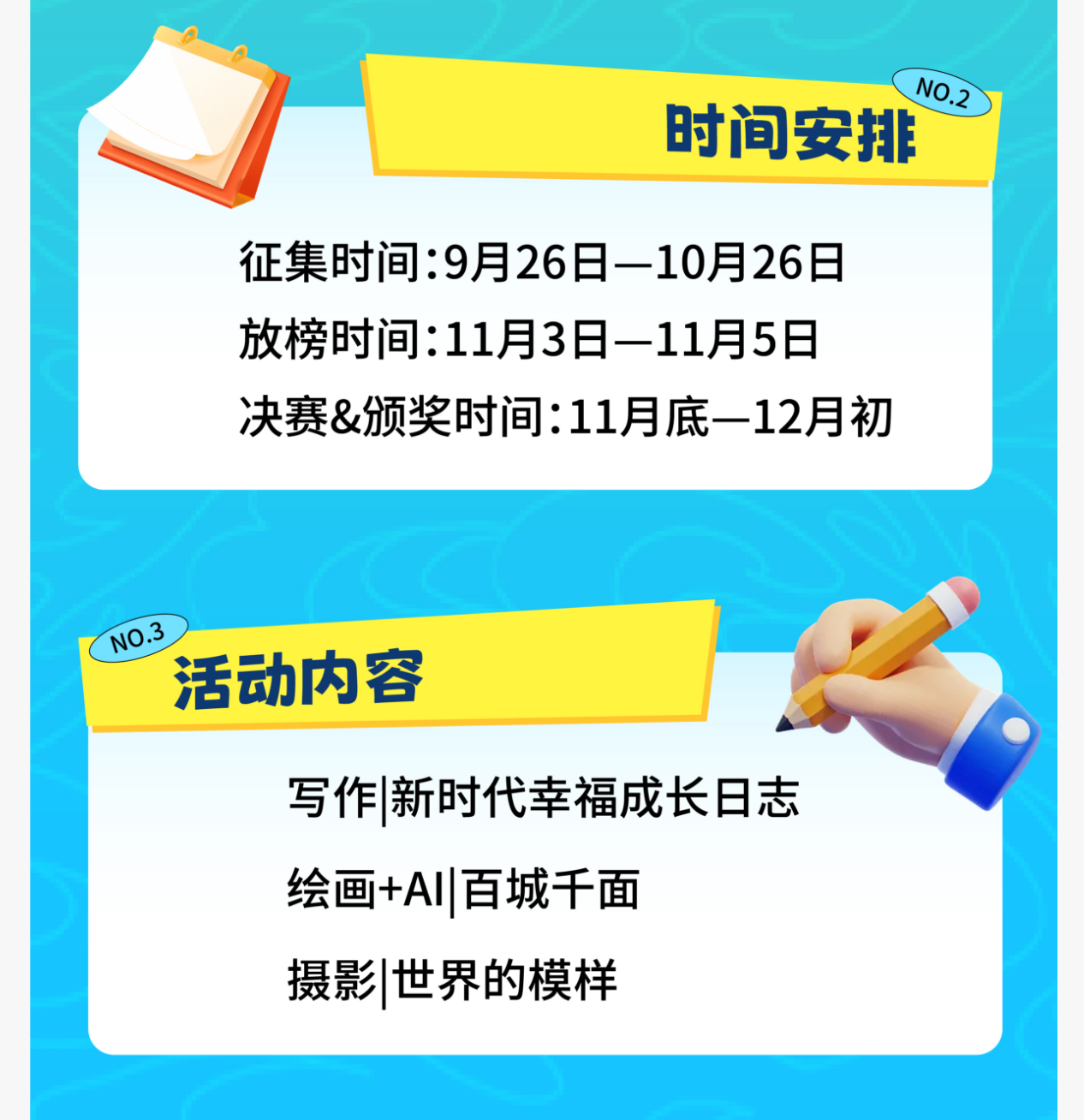 大賽打破單一賽道局限,設置寫作、攝影、繪畫+AI三大核心賽道,覆蓋不同特長青少年需求,讓每個孩子都能發揮所長、觀察世界、表達自己,在實踐中建立自信。