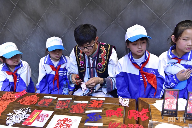 呈貢非遺傳承人正在講解剪紙技藝(央廣網(wǎng)發(fā) 呈貢區(qū)融媒體中心供圖)